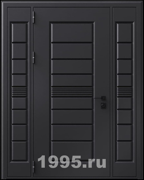 Выбирая входной блок по первому критерию, изучите её конструкцию. Хорошая дверь в частный дом создана с использованием наружного листа металла с толщиной не менее 2 мм. Поинтересуйтесь, укреплено ли полотно ребрами жесткости – они нужны для того, чтобы створка не деформировалась под нагрузками. Наличие противосъёмных фиксаторов петель также говорит в пользу надёжности конструкции. С ними створка останется на месте, даже если петли будут сбиты или перепилены.